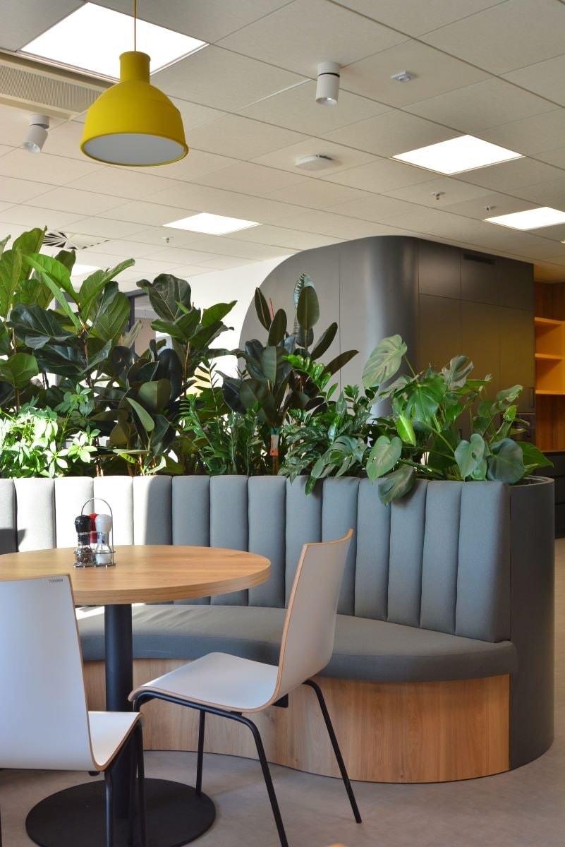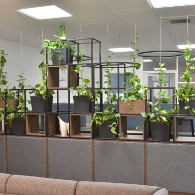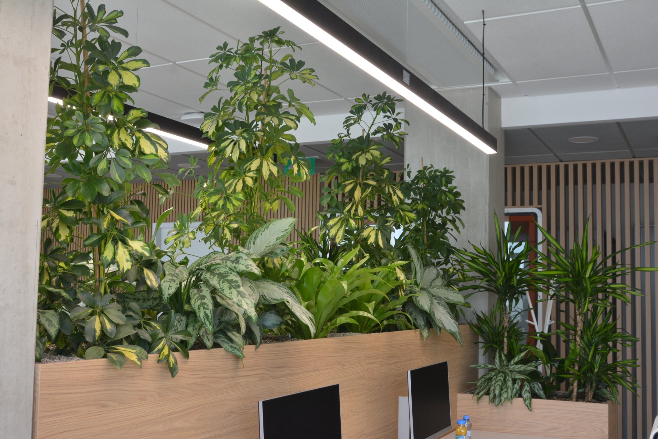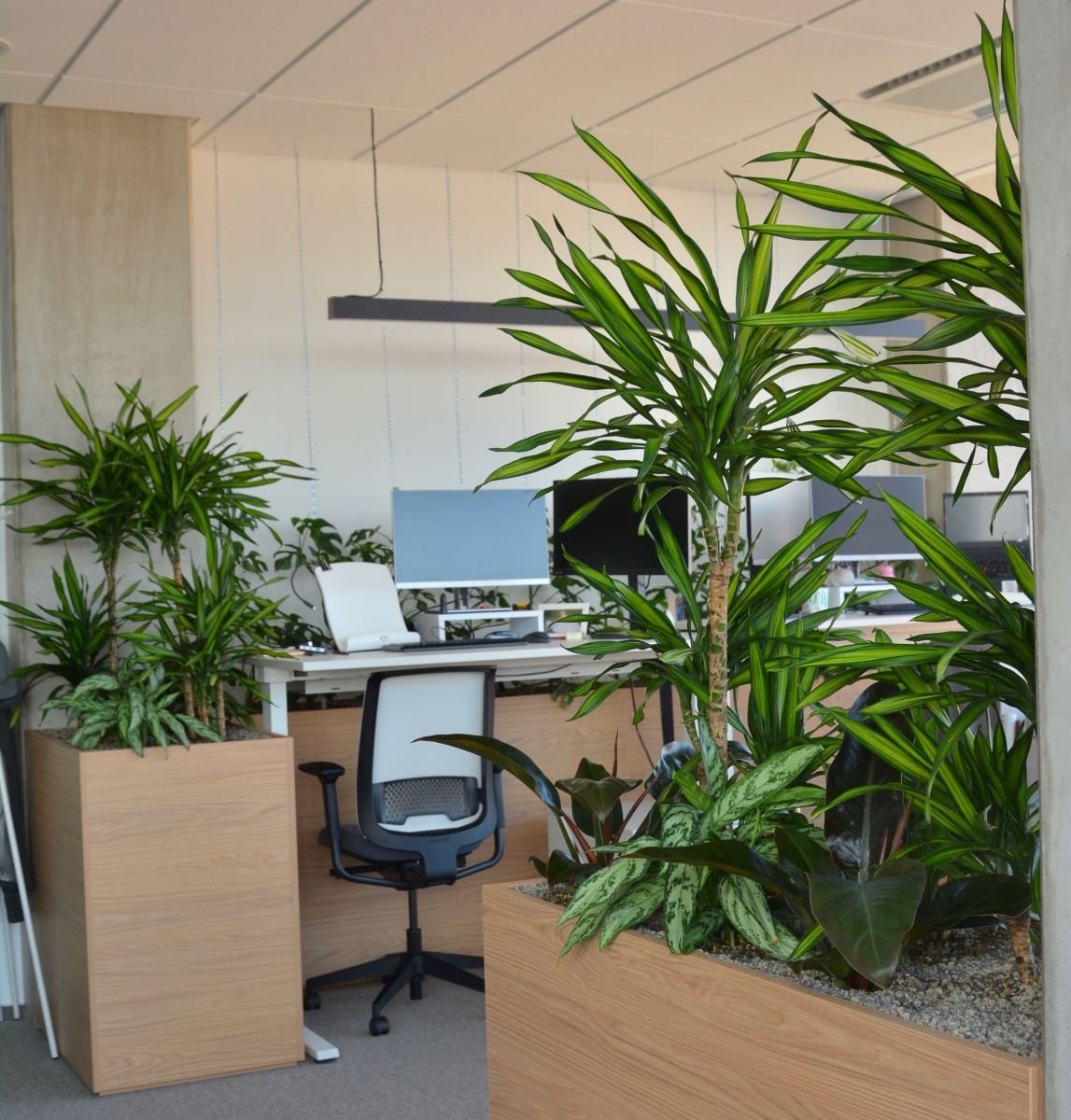 V mnoha kancelářských prostorách jsme už instalovali zelené prvky, které přispívají ke zlepšení pracovního prostředí. Například jsme v kancelářích využili prostor mezi pracovními stoly k vytvoření zelených předělů, které poskytují soukromí a zároveň zlepšují celkovou atmosféru v místnosti. Dále jsme instalovali rostliny kolem sloupů i v recepcích.