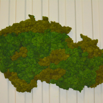 Barevné varianty lišejníku nám umožnily rozlišit na mapě České republiky hory a nížiny. Přáním zákazníka byla možnost umístění mapy na plechové dveře a byla tak zajištěna její mobilita. Použili jsme u produktu úzké magnety a maximálně jsme tak splnili požadavek našeho klienta. Mapa z lišejníku je díky tomu přemístitelná a použitelná na různých místech.