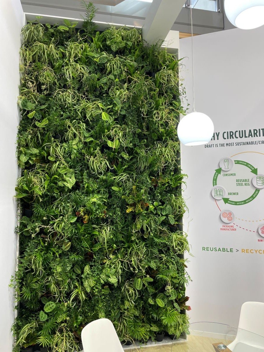 Na výstavu v Mnichově jsme připravili dvě zelené stěny o velikosti 6 a 7 m². Při výběru rostlin jsme mysleli na to, aby vydržely v perfektním stavu bez zálivky po celou dobu trvání výstavy, a to 14 dní.
